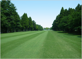 グリーン手前に有名な「楠の木」がそびえ立つ名物ホールです。